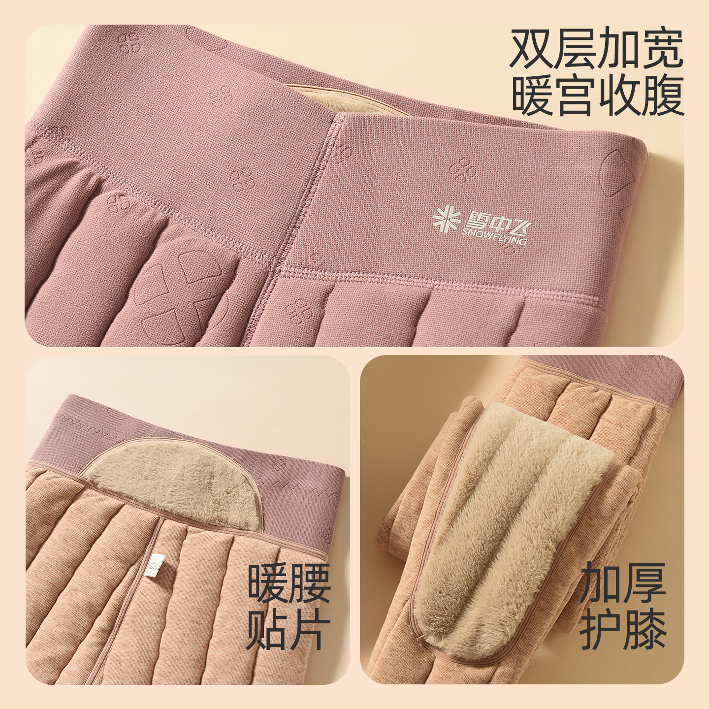 雪中飞德绒发热保暖裤高腰冬季线裤打底加绒羊毛裤棉裤加厚秋裤女