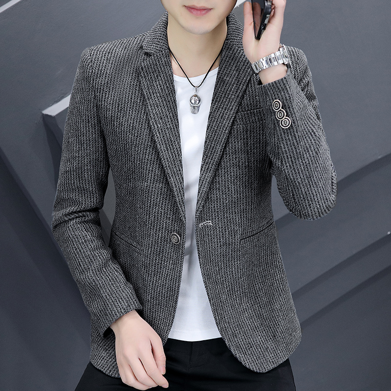 春秋灯芯绒小西装男韩版潮流修身西服外套男士单西帅气休闲上衣服