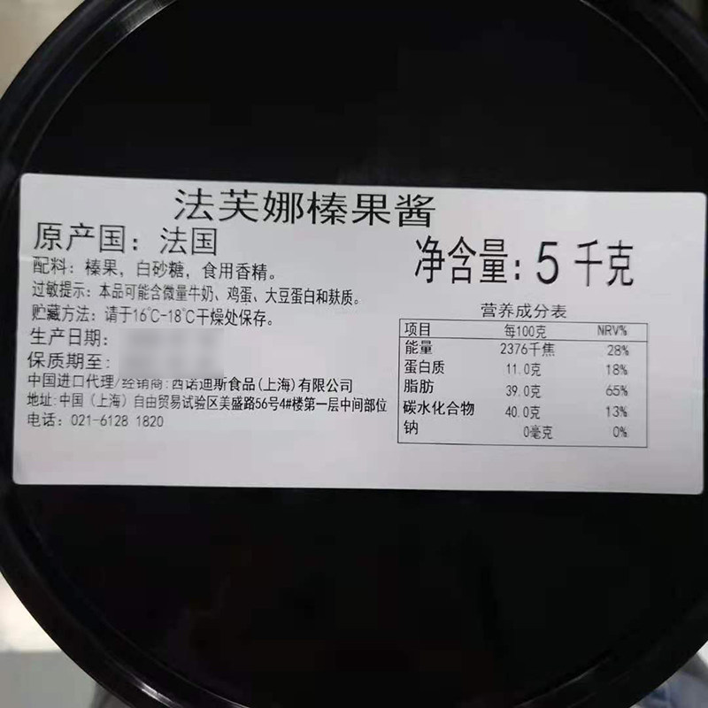 法国进口法芙娜60%榛子果酱500g坚果馅果泥 夹馅装饰烘焙原料