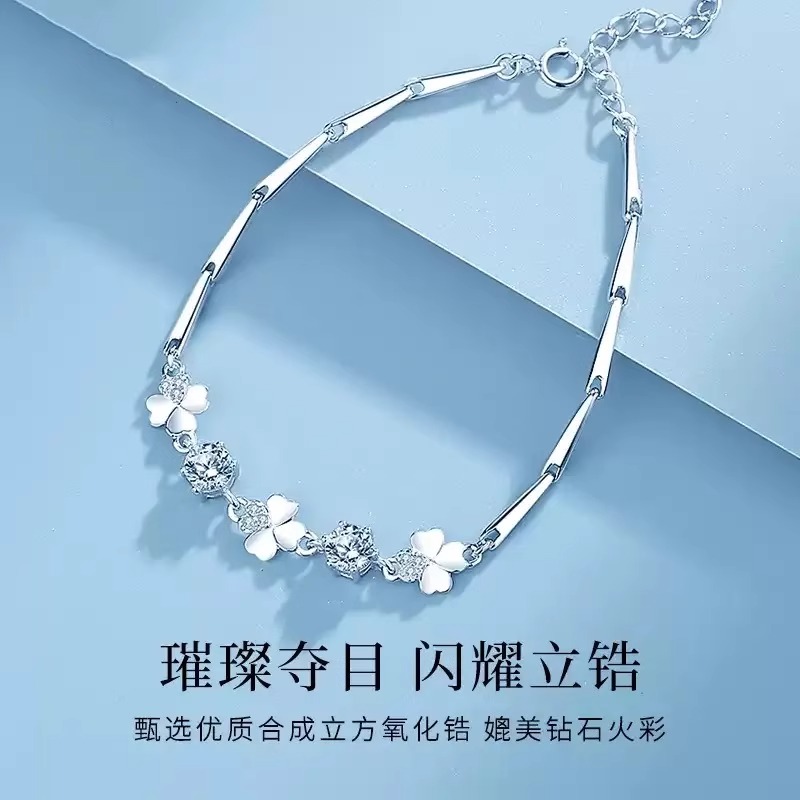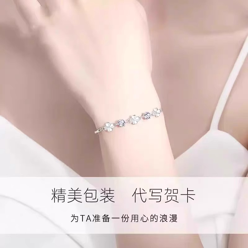 S925纯银手链幸运四叶草实用的生日礼物女生精致送女友闺蜜情人节