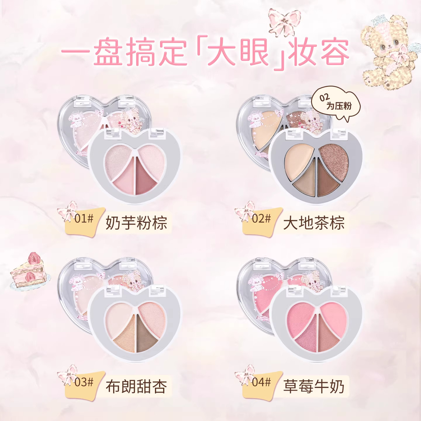 JILL LEEN天使小熊四色卧蚕眼影盘大地色阴影提亮自然立体低饱和