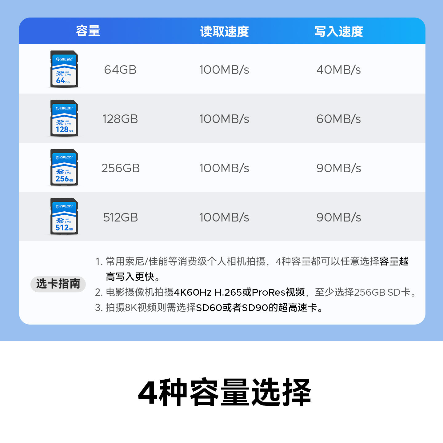 奥睿科SD存储卡128G相机v30内存卡高清4K索尼佳能富士尼康通用卡