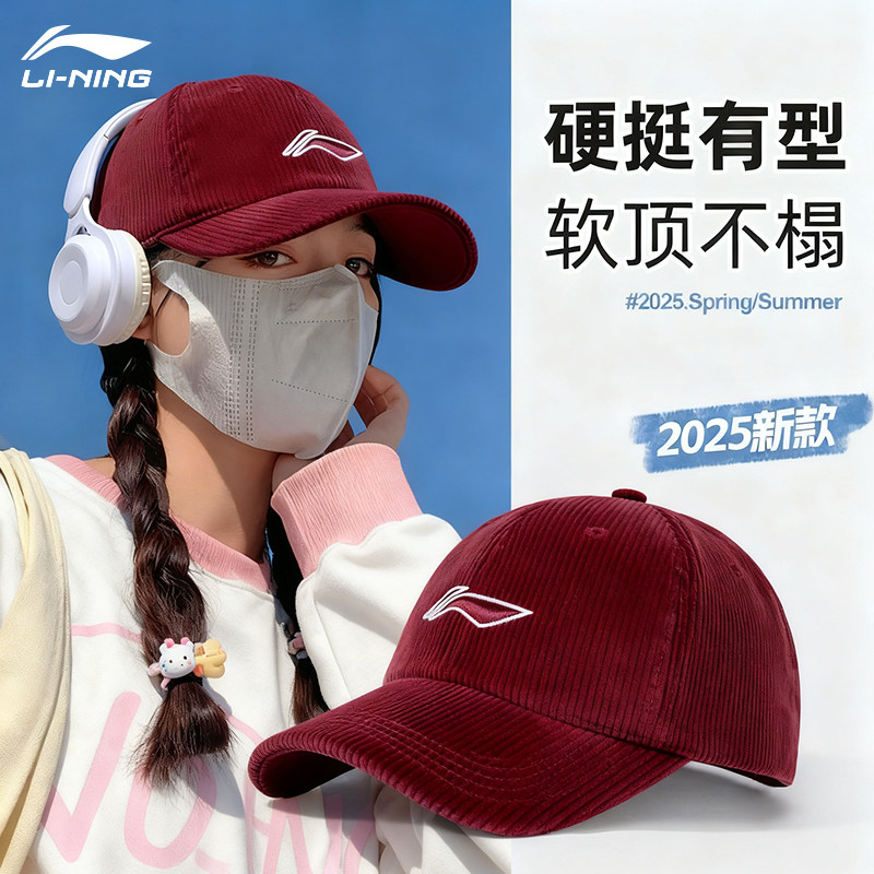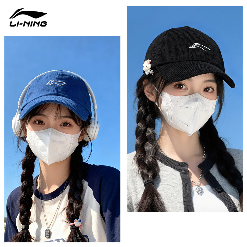 李宁新款棒球帽女潮流复古休闲舒适刺绣鸭舌帽条纹绒高中生秋冬款