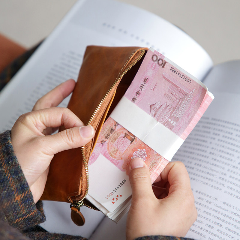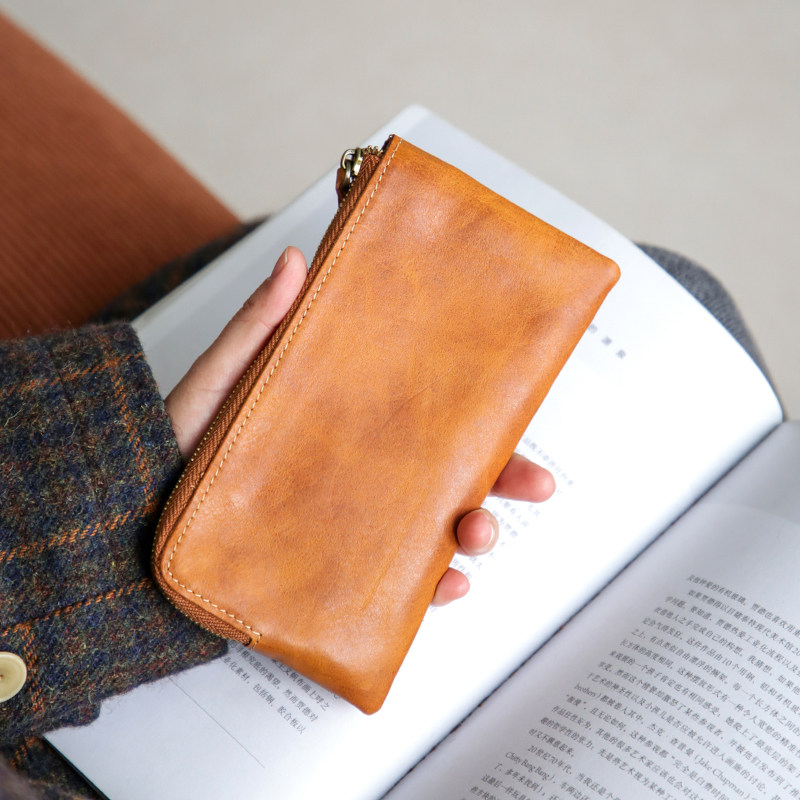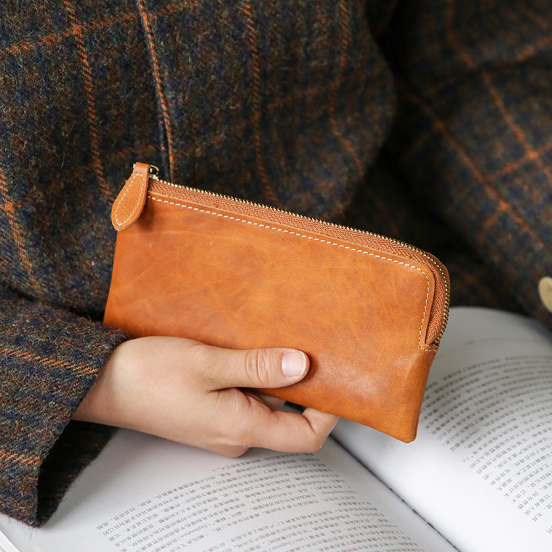 真软皮长款钱包女头层皮复古拉链手拿零钱简约超薄便携卡包收纳包