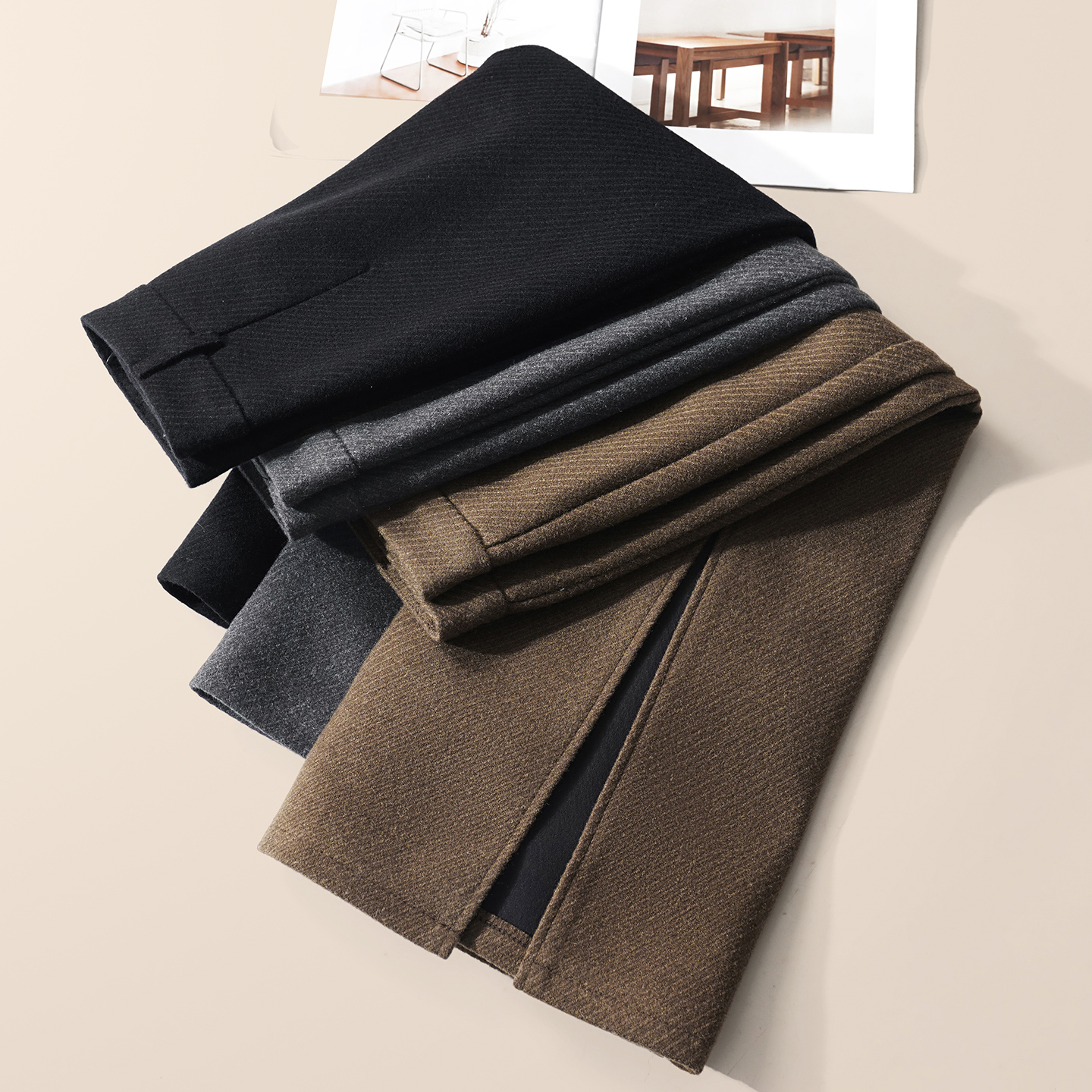 侧开叉醋酸羊毛毛呢半身裙