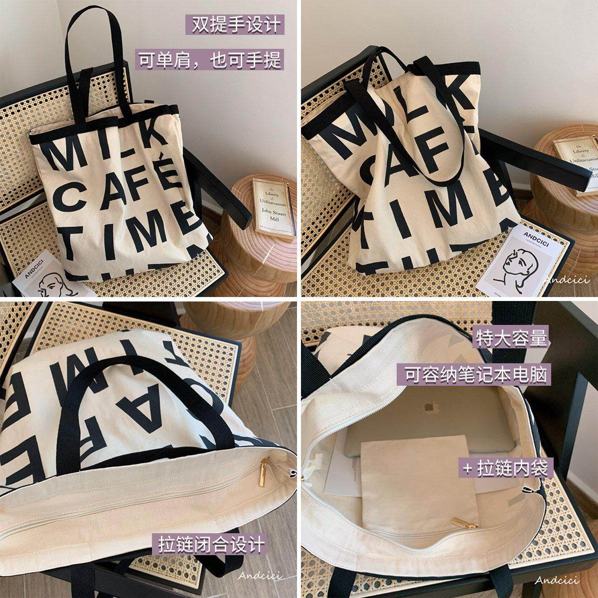 ANDCICI@曼城大包~网红拉炼帆布包袋男女单肩手提书包旅行托特包