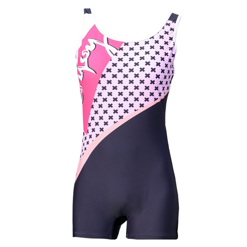 2024新款女士连体平角专业训练保守背心速干大码少女学生游泳衣装