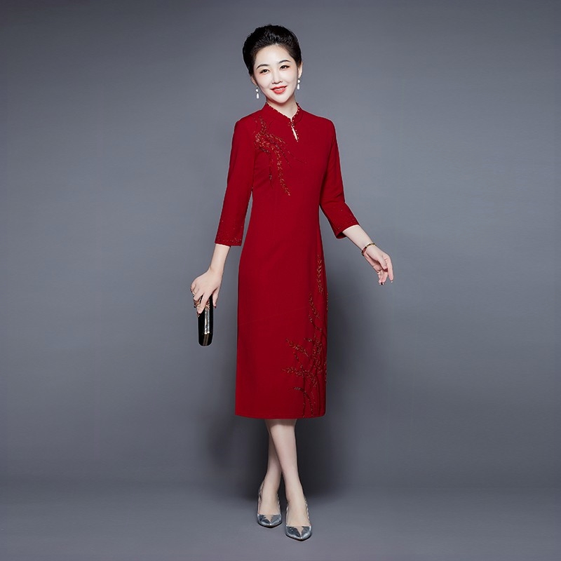 工作室原创春秋女结婚妈妈装高档婆婆中国风喜庆婚礼旗袍裙婚宴喜