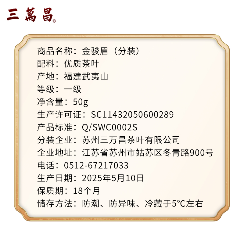 三万昌 福建武夷山桐木关金骏眉红茶散装茶叶一级红茶罐装春茶50g