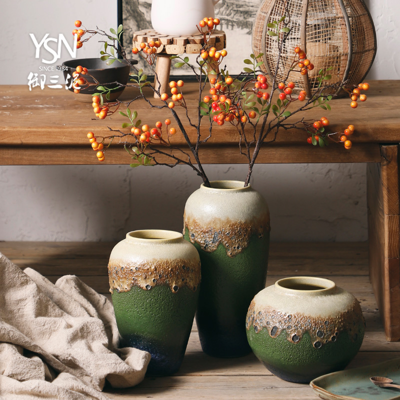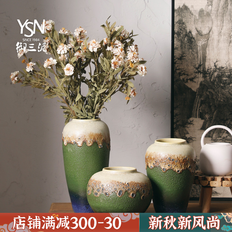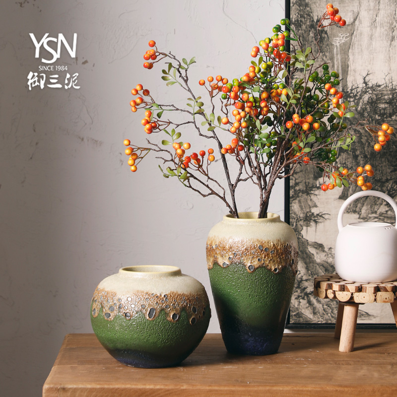 御三泥田园风粗陶花器干花插花花瓶土陶花盆新中式装饰品摆件罐子
