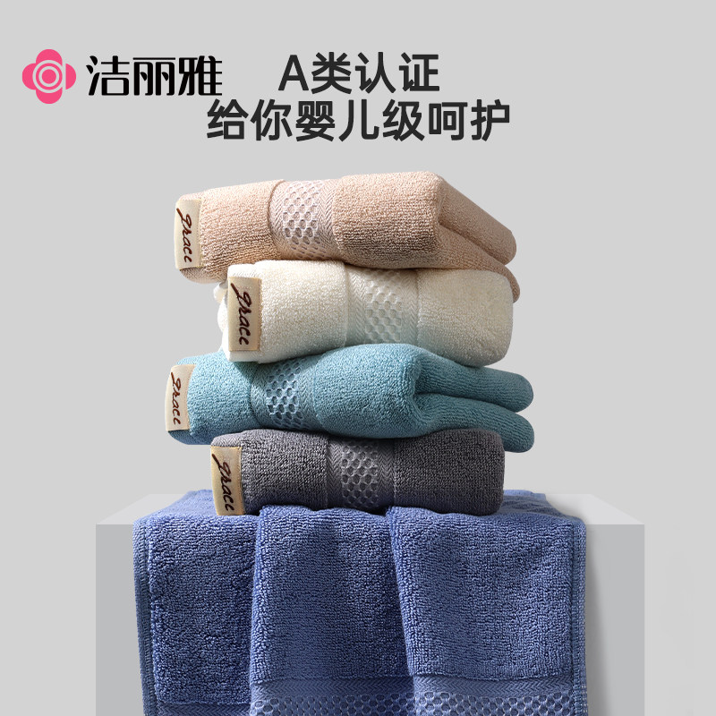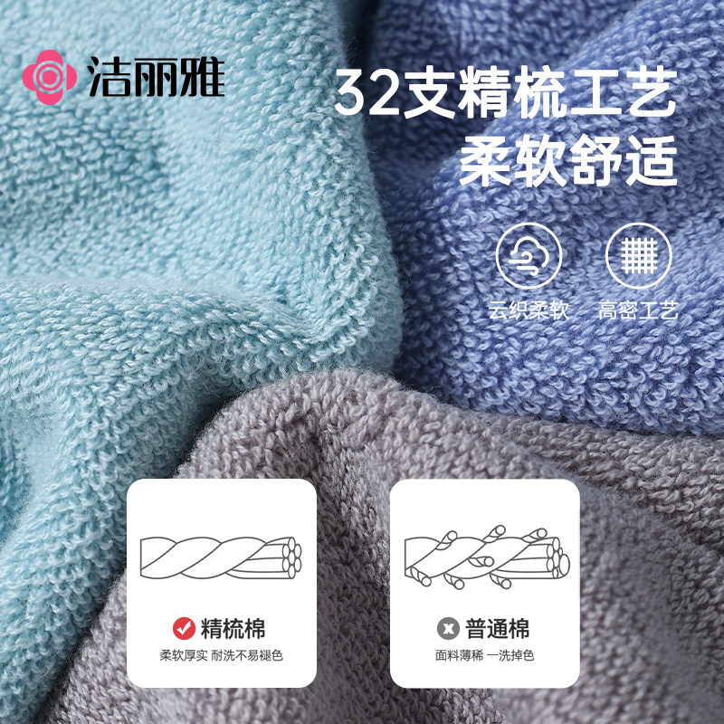 2条装 洁丽雅毛巾纯棉洗脸家用吸水速干全棉男士毛巾女士不易掉毛