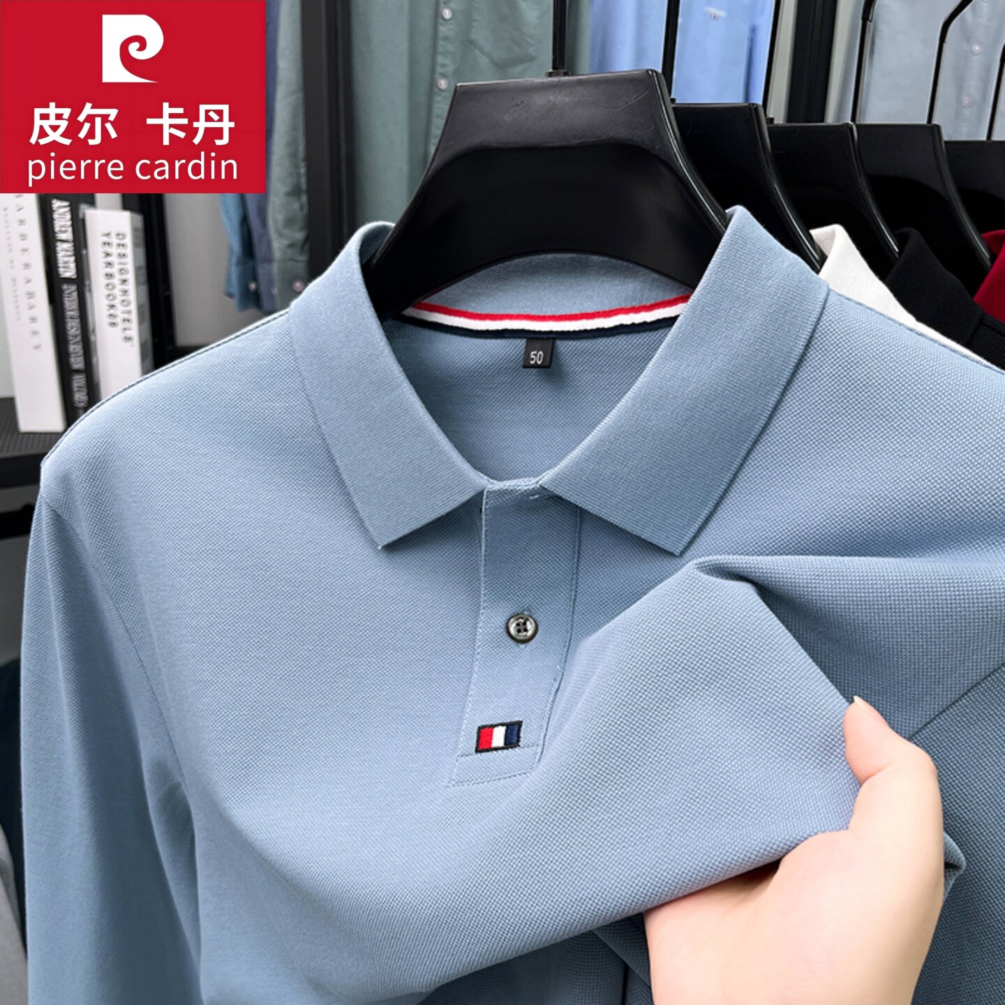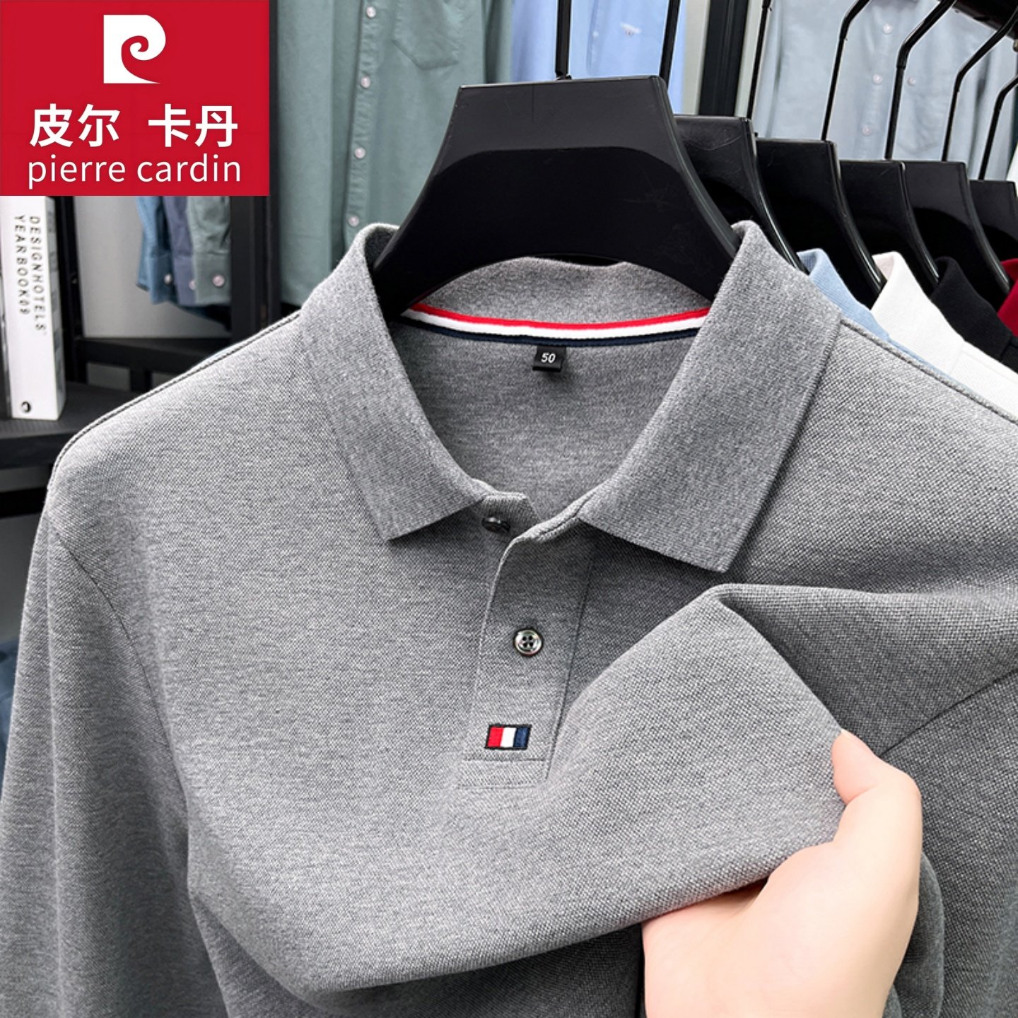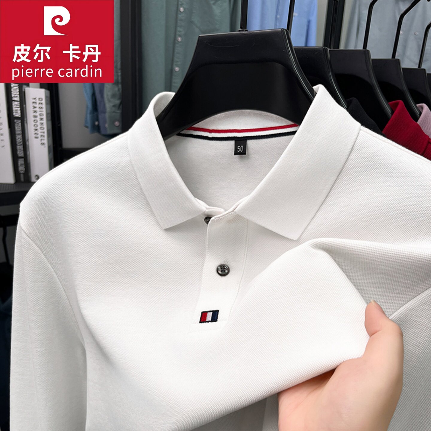 皮尔卡丹男士长袖t恤高端品牌春秋季休闲商务高级纯棉翻领Polo衫