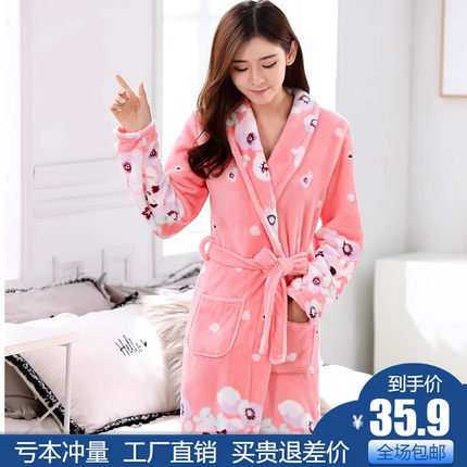 新品长款加厚法兰绒修身性感睡衣