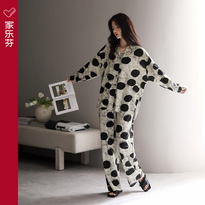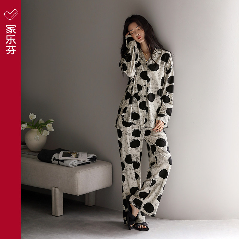 家乐芬睡衣女士春秋款莫代尔棉长袖家居服薄款大码冰丝套装高级感