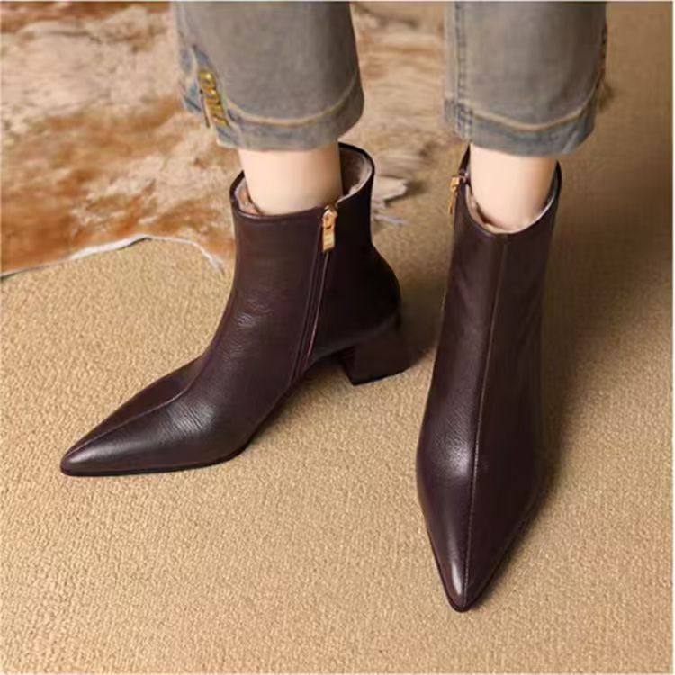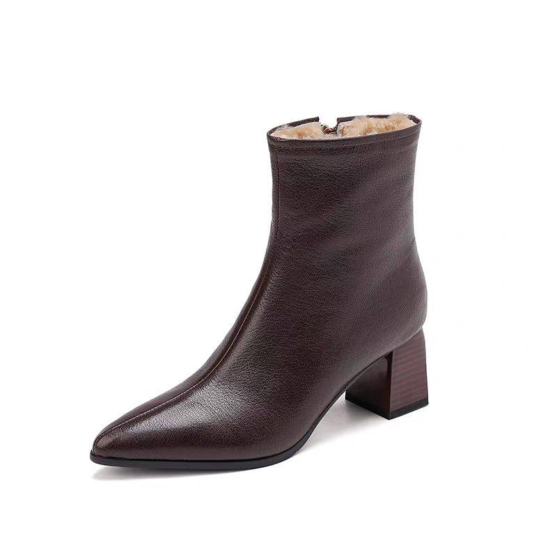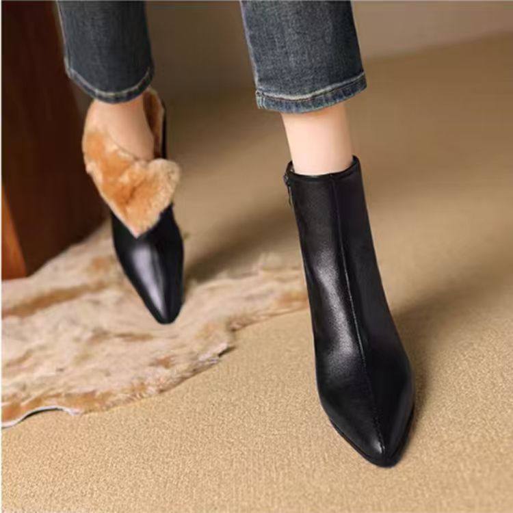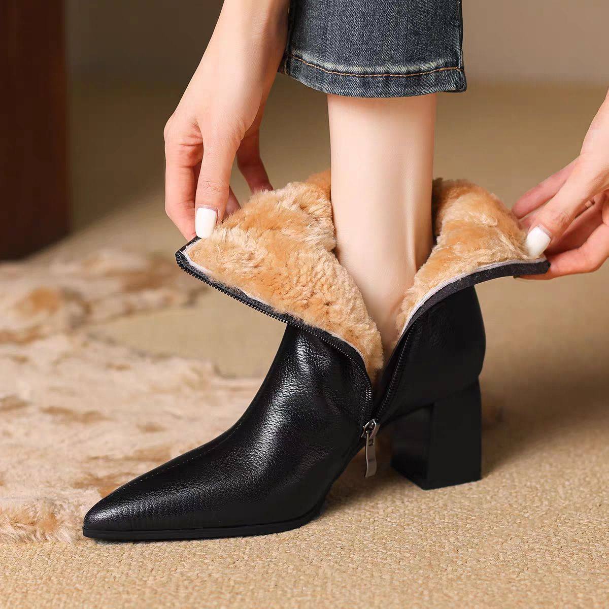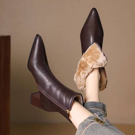 5cm皮毛一体雪地靴女2025冬季加绒加厚尖头短靴保暖真皮大码棉鞋