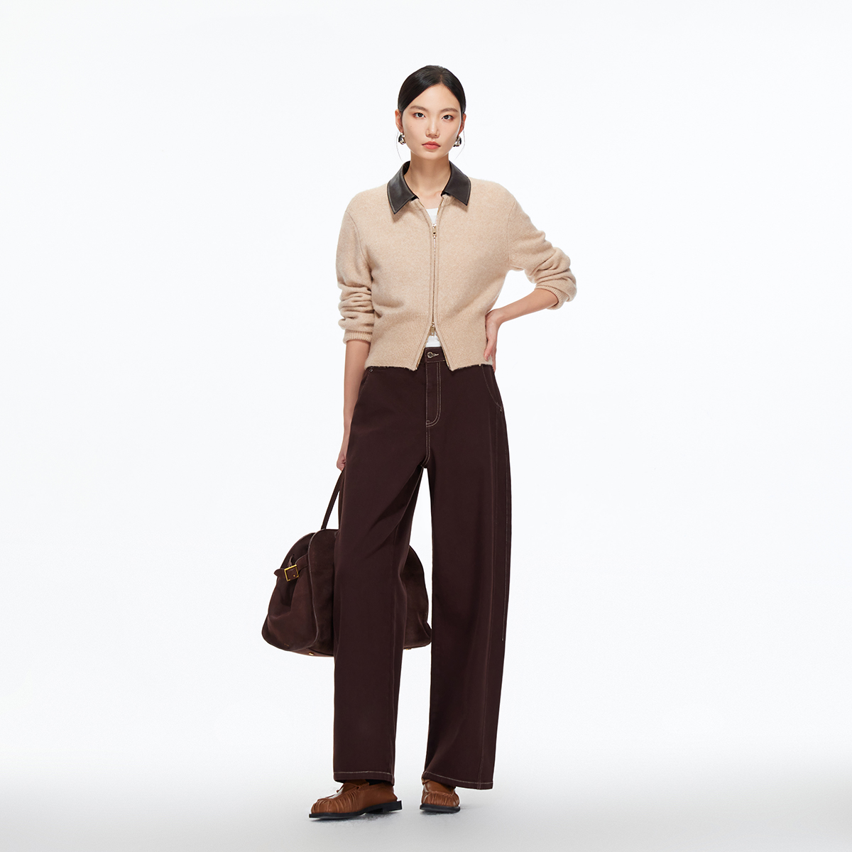 Vero Moda牛仔裤25冬季新款含棉撞色明线气球裤显高显瘦325432027