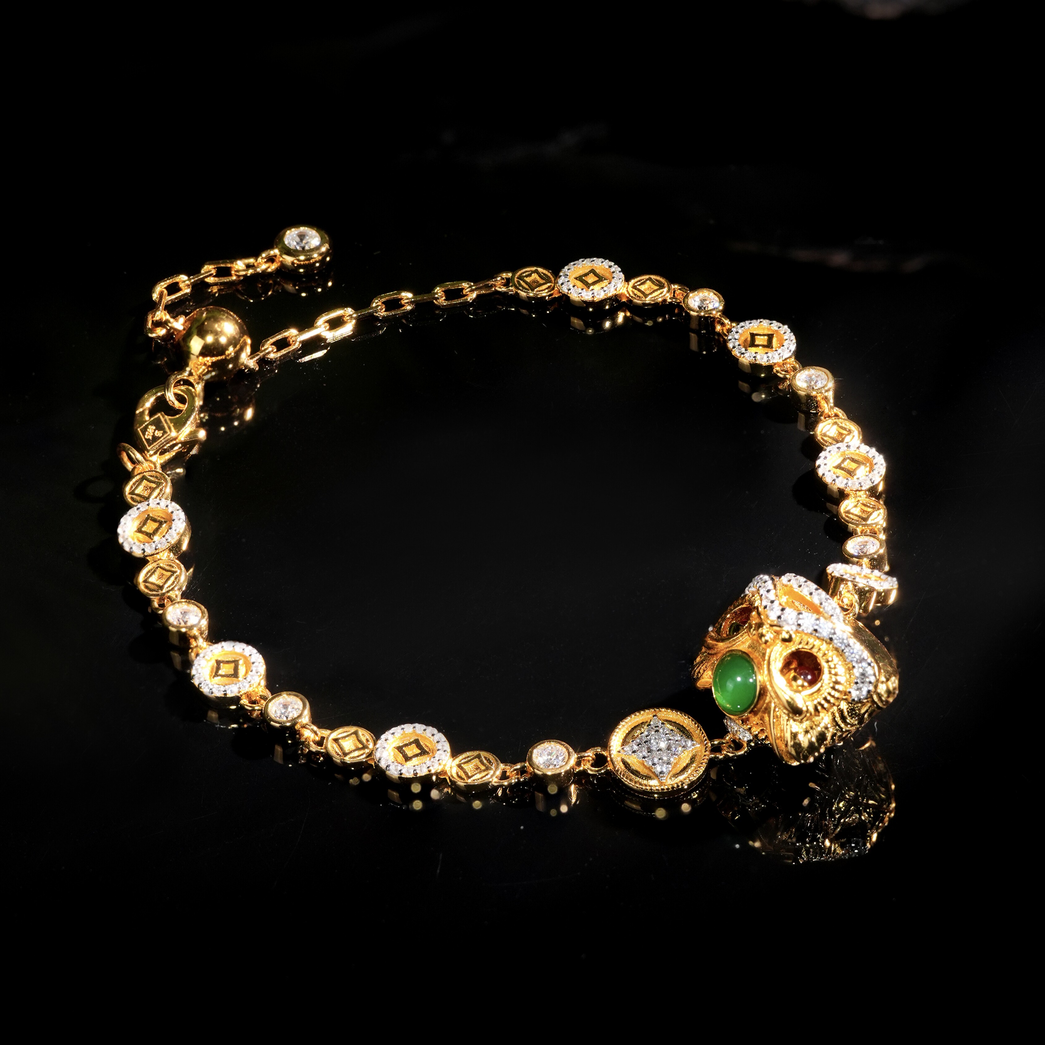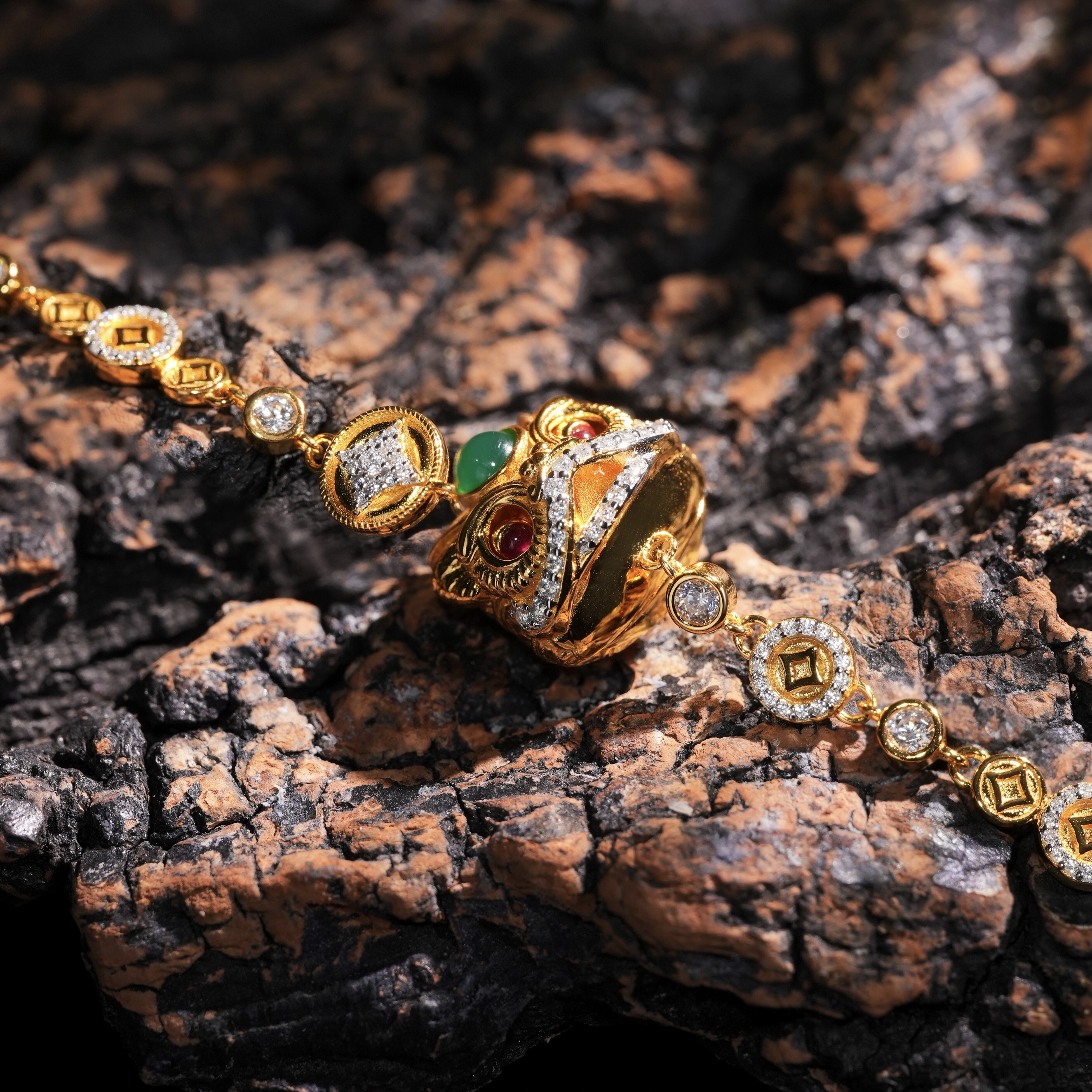 VISING珠宝培育红宝石【国检】原创醒狮手链手串金盘缠黄金色S925