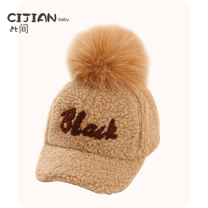 宝宝冬季鸭舌帽韩版百搭女童可爱超萌棒球帽男童洋气时尚毛球帽子