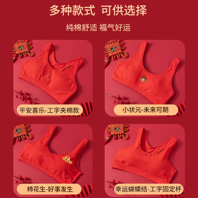 女童本命年少女文胸新年红色内衣内裤套装12岁学生发育期纯棉背心