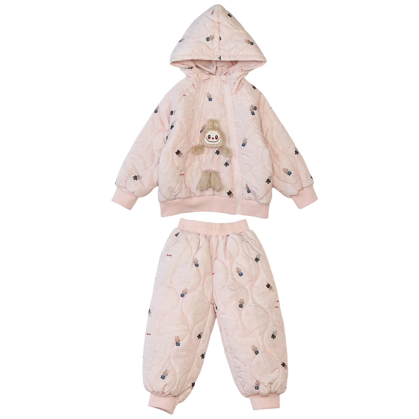 女童拉布布休闲套装冬装2025款女宝宝加厚连帽棉衣保暖棉裤两件套