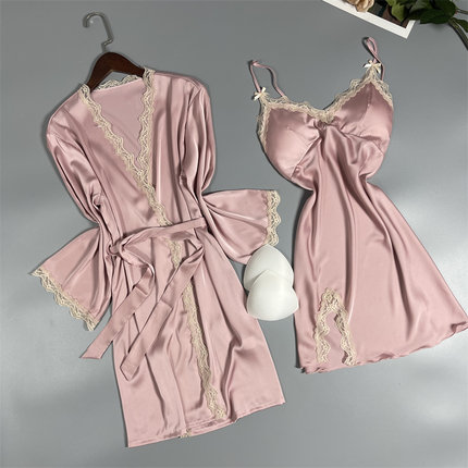 性感睡衣女2024新款秋季女款冰丝纯欲小胸带胸垫吊带睡裙套装女夏