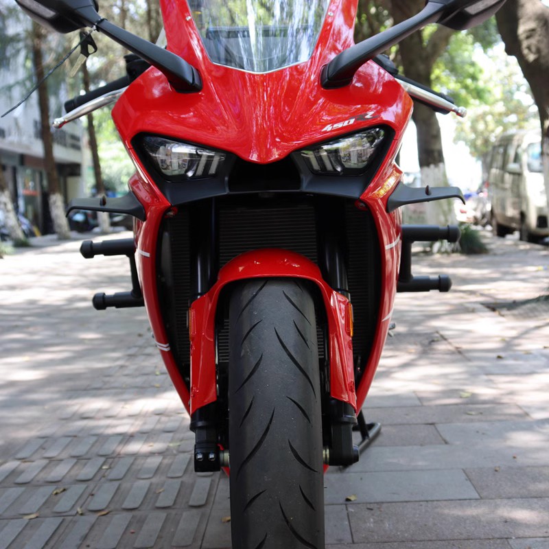 适用凯越450RR跑车防摔保险杠摩托车弹簧头护杠竞技杠一字杠改装