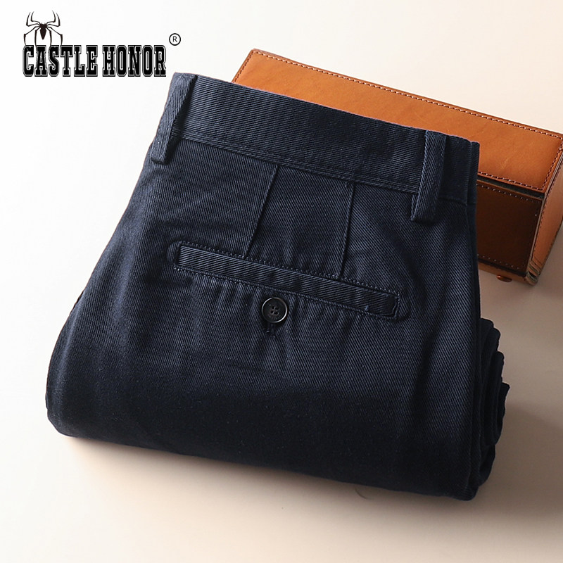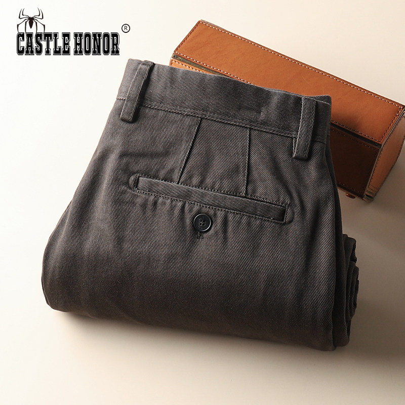 意大利进口面料100%棉宽松直筒商务休闲裤秋冬厚款