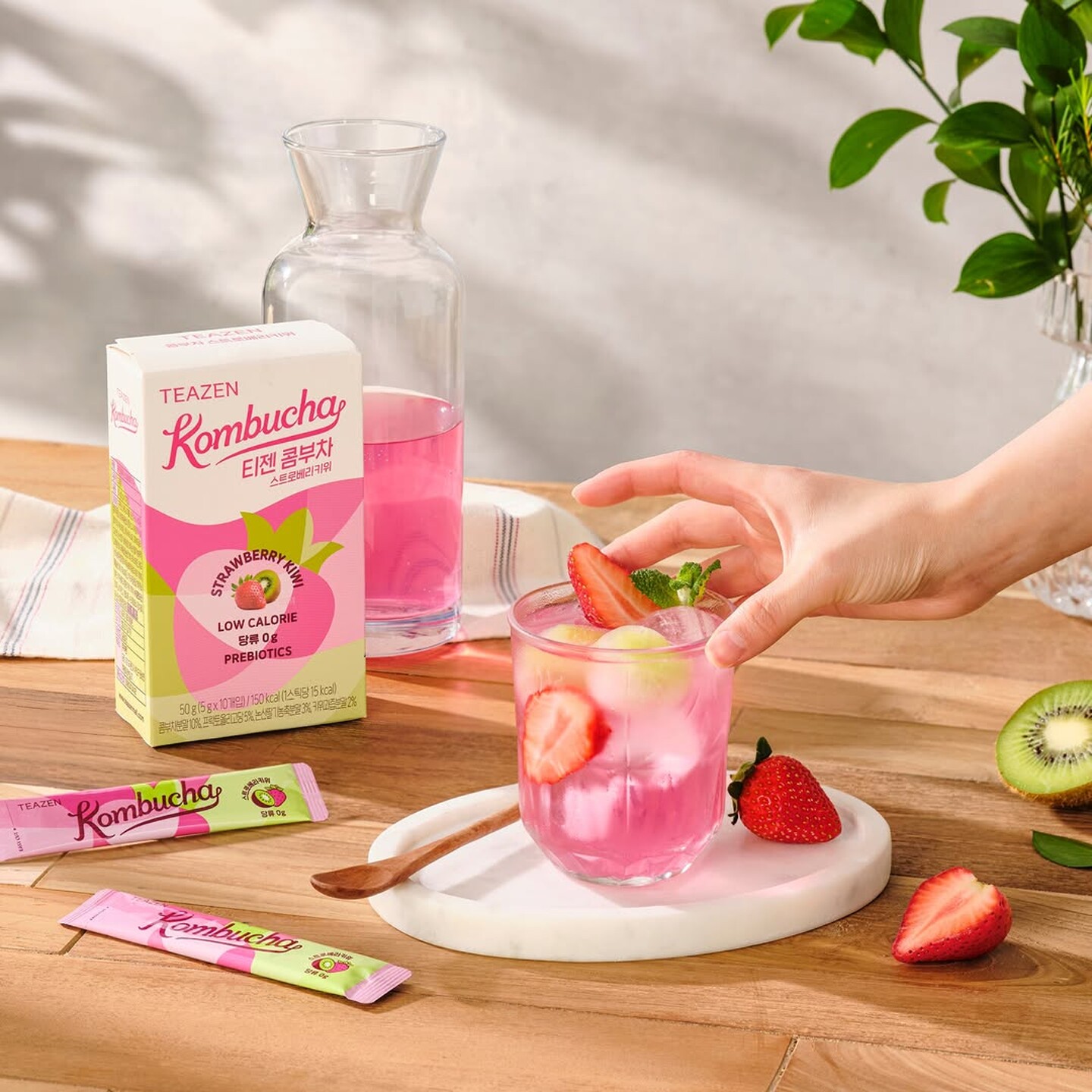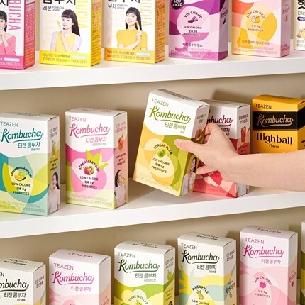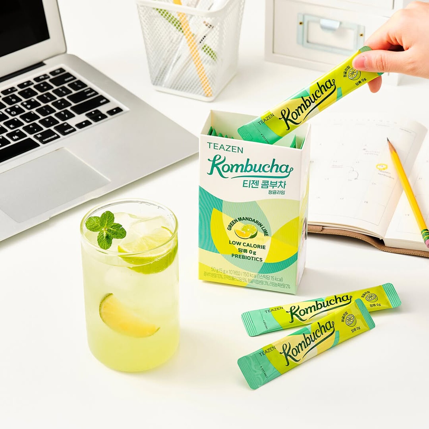 韩国进口teazen水蜜桃葡萄速溶康普茶BTS田柾国气泡茶饮料无砂糖