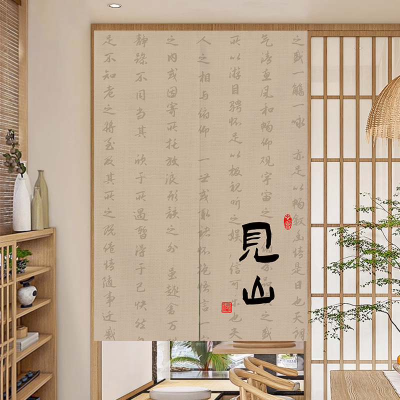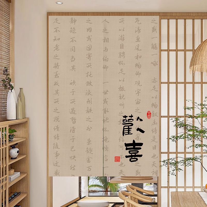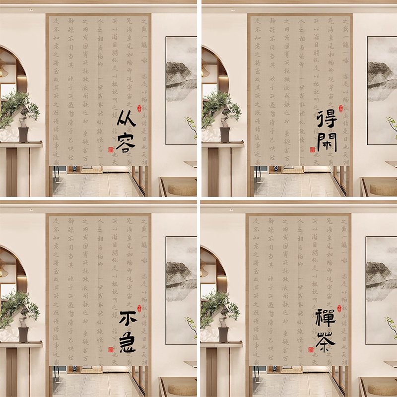 中国风禅意门帘卧室客厅免打孔半帘洗手间隔断帘茶室复古遮挡帘子