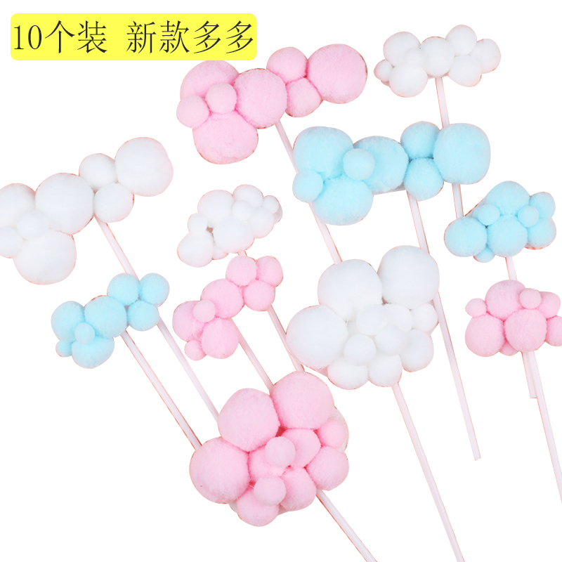 10个装生日蛋糕装饰毛球云朵立体热气球月亮白云插件插牌插旗派对