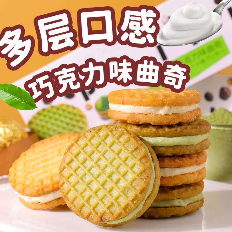 巧爆抹茶巧克力夹心曲奇饼干酸奶味网红休闲零食解馋独立包装礼盒