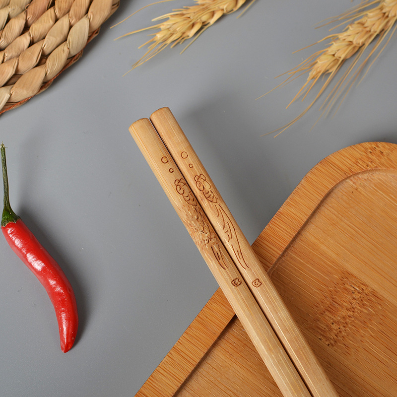 10双雕刻高档家用天然竹筷子中式家庭套装餐厅酒店防滑高温餐具