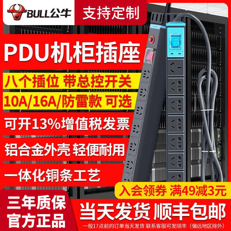 公牛PDU机柜插座机房电源插排插线板防雷大功率无线8位多孔工业程