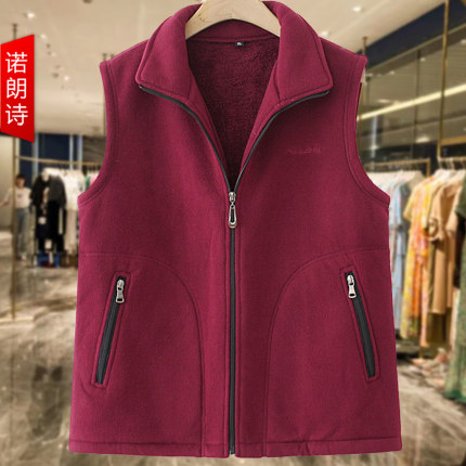 洋气胖妈妈摇粒绒立领马甲背心秋