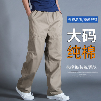 爸爸裤子春秋款宽松直筒中老年男裤秋冬款中年大码高腰纯棉休闲裤
