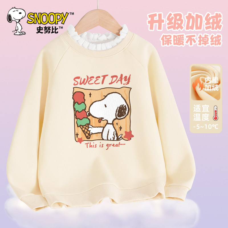 史努比儿童卫衣2026新款女大童加绒衣服秋冬款女童木耳边保暖上衣