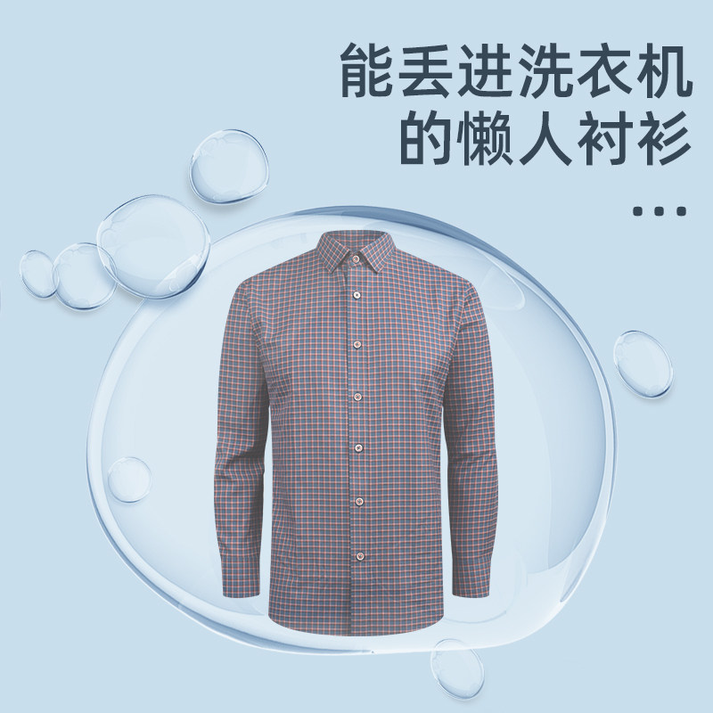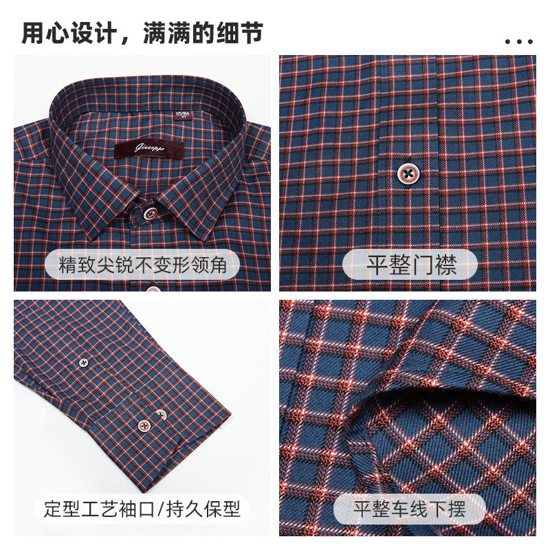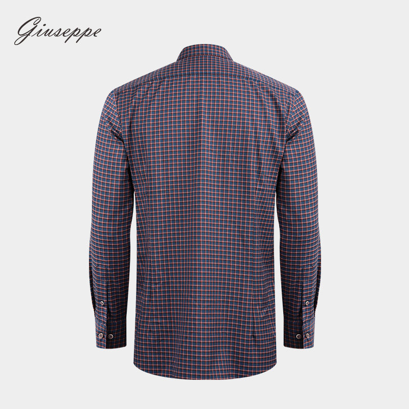 乔治白男士秋季橘白紫格子尖领长袖衬衫商务休闲上衣