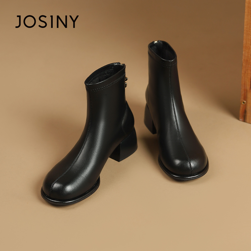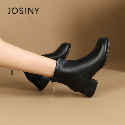 卓诗尼女靴短靴女新款秋冬马丁靴瘦瘦靴百搭平底粗跟短靴雪地靴