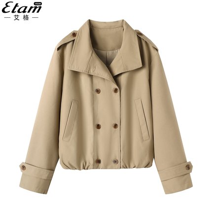 艾格短款风衣外套女卡其色双排扣2025秋季新款女宽松休闲韩系上衣