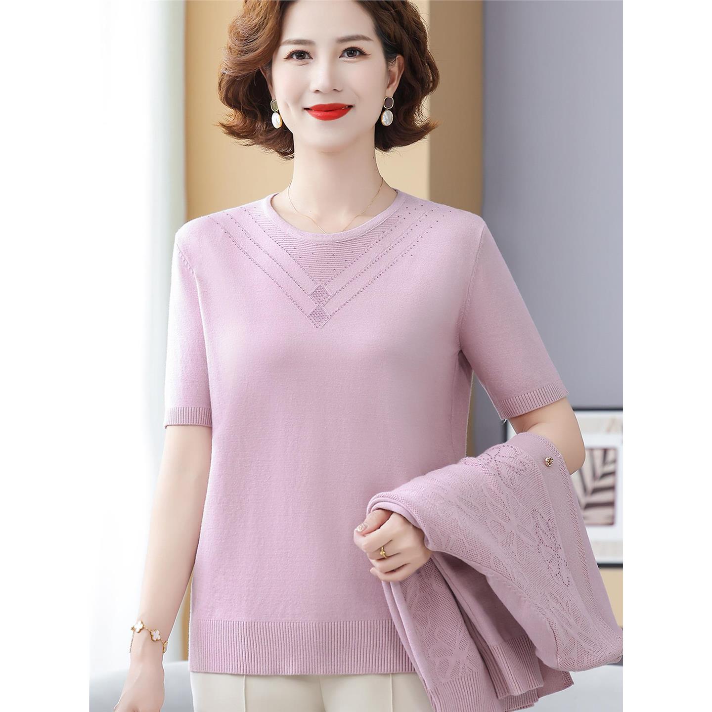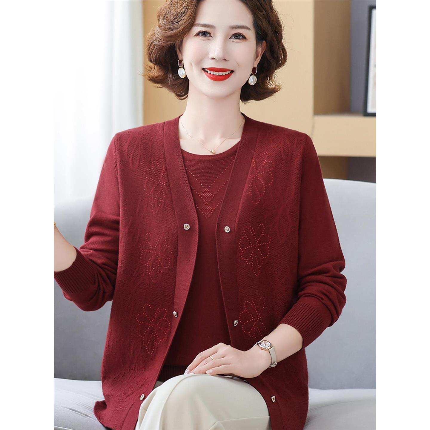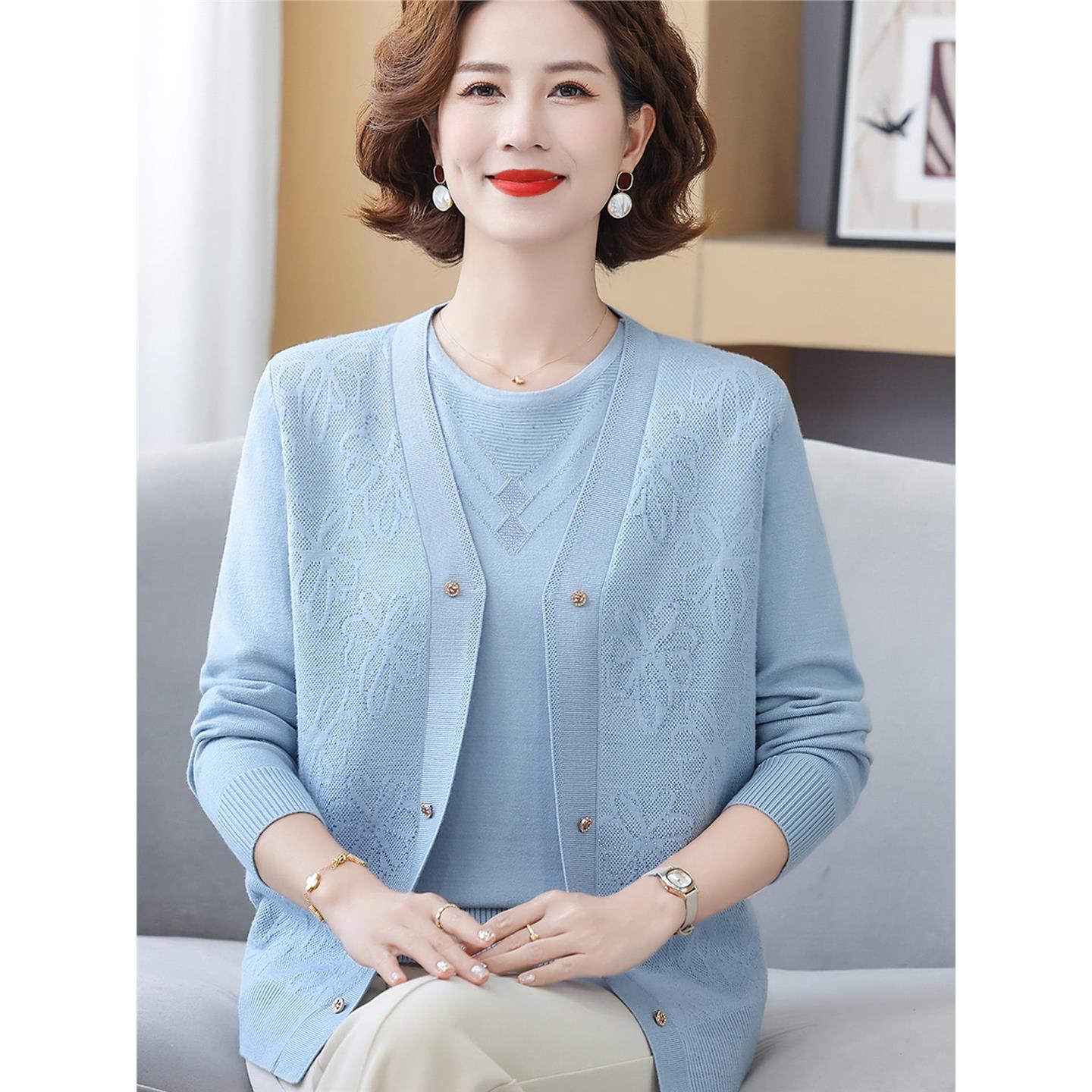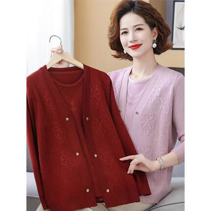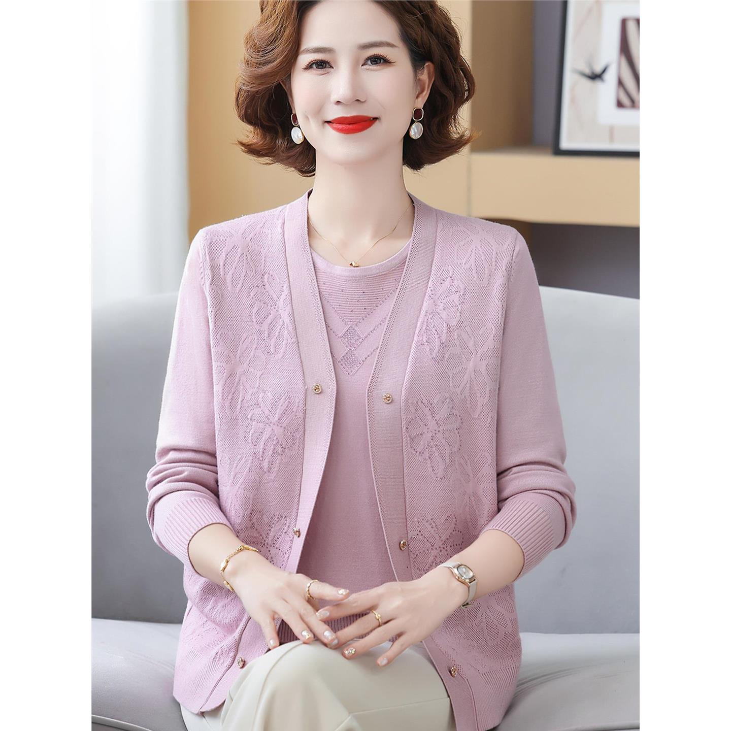 中老年女秋装2025新款针织洋气两件套上衣妈妈装春秋季薄开衫外套