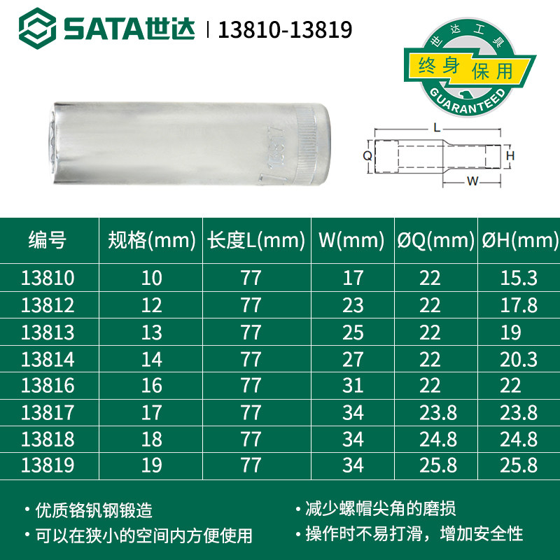 世达12.5mm系列花形套筒12角长套筒头大飞加长汽修手动扳手工具