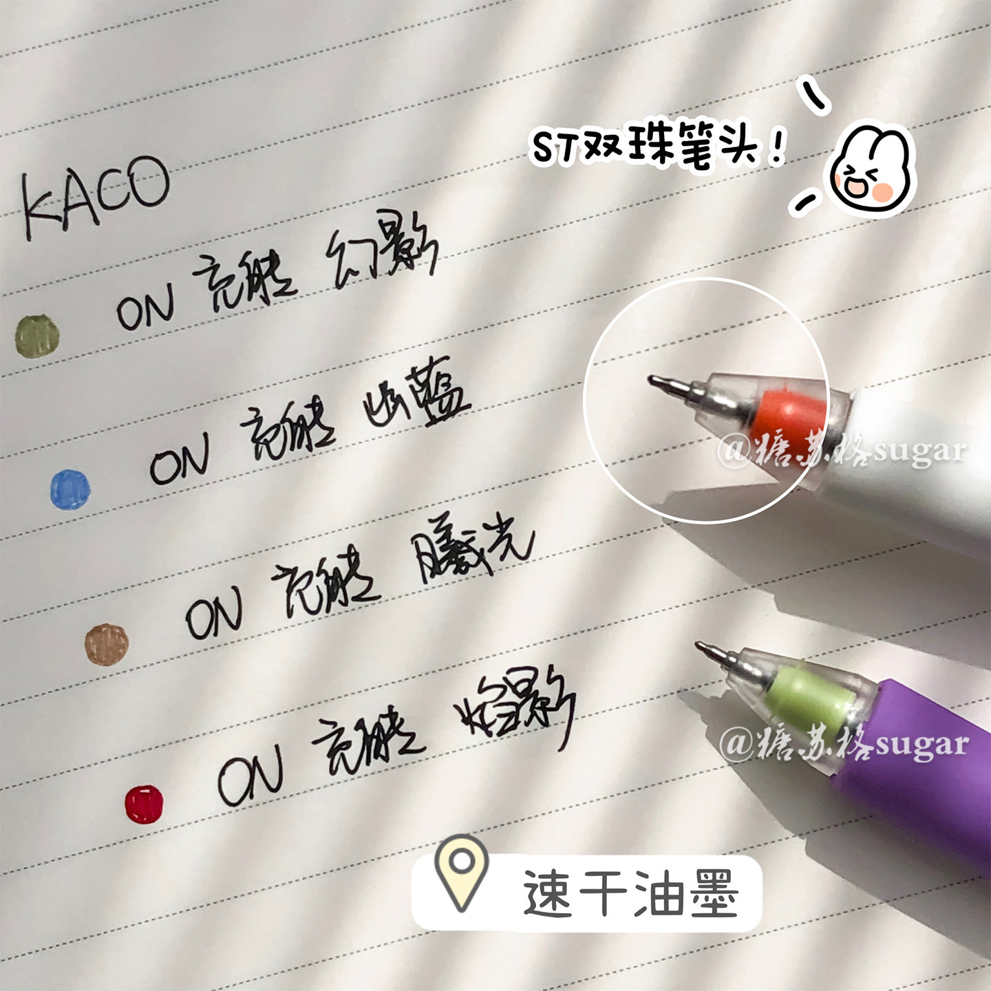 KACO ON充能笔按动中性笔速干简约水笔0.5学生双珠ST头黑色签字笔