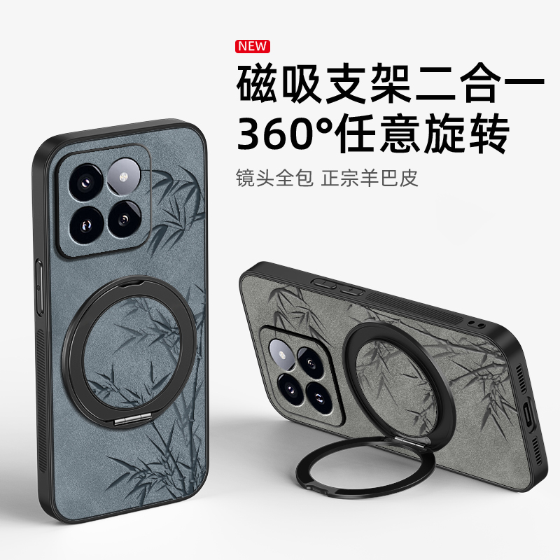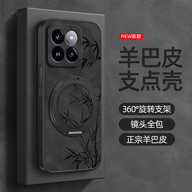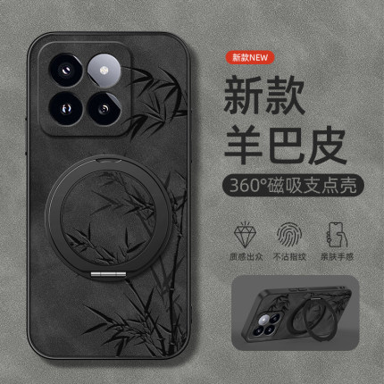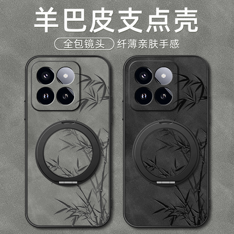 适用小米14手机壳小米15spro/13/12/11/10保护套14Ultra旋转支架civi5pro/4/3/2磁吸12x新款竹叶羊巴皮