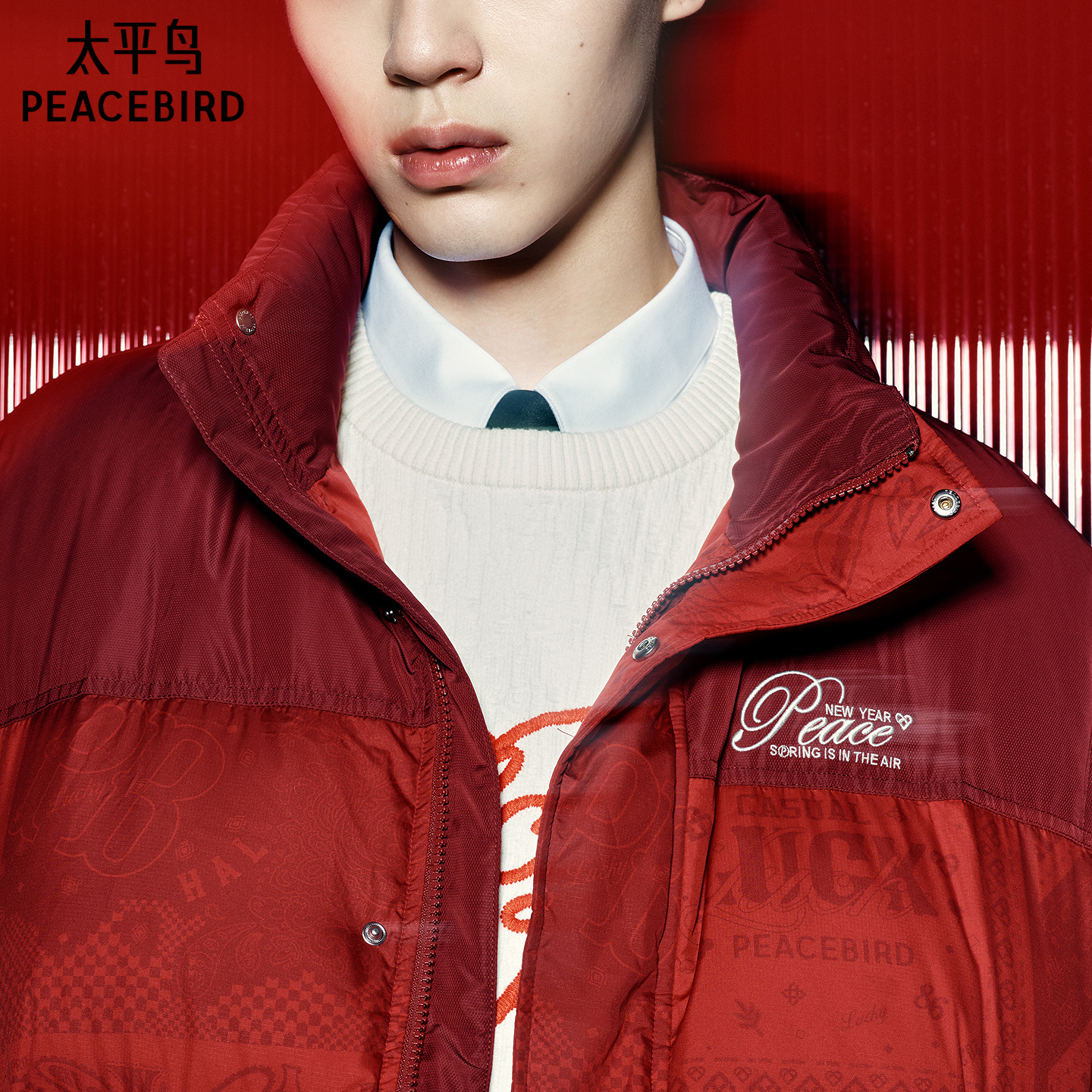 太平鸟男装 休闲羽绒服时尚经典舒适羽绒服男潮流男士红色面包服