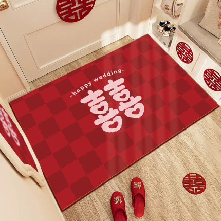 结婚地垫喜字入户门垫家用喜庆进门口脚垫婚礼婚房装饰红色地毯
