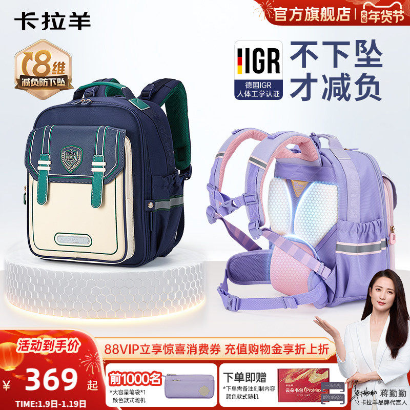 【云朵书包ProMax】卡拉羊中小学生双肩背包8维减负防下坠初中生