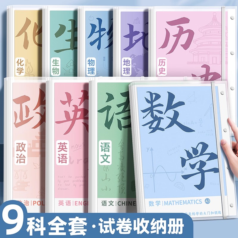 A3试卷收纳袋试卷夹小学初中生专用试卷整理神器多层透明插页文件夹考卷子资料册高中生大容量科目分类文件袋