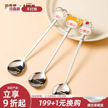 川岛屋&lulu猪联名 不锈钢小勺子杯子用长柄咖啡搅拌勺可爱甜品勺