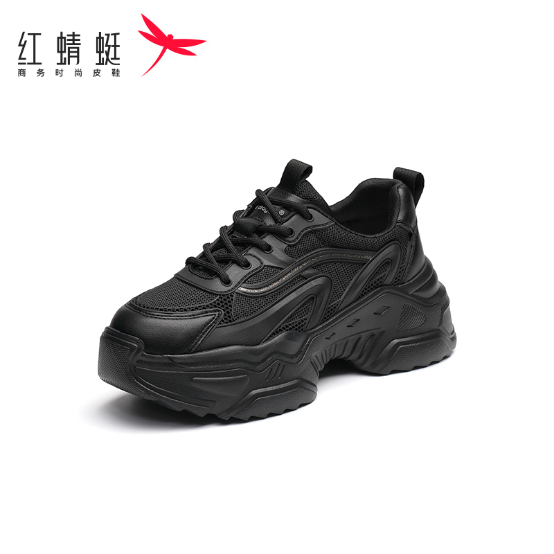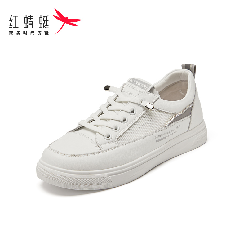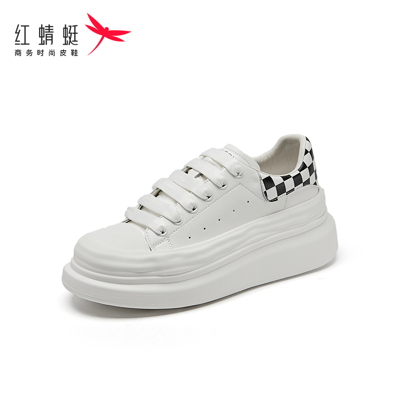 红蜻蜓春秋季女士薄款透气休闲学生板鞋时尚厚底小白鞋运动老爹鞋