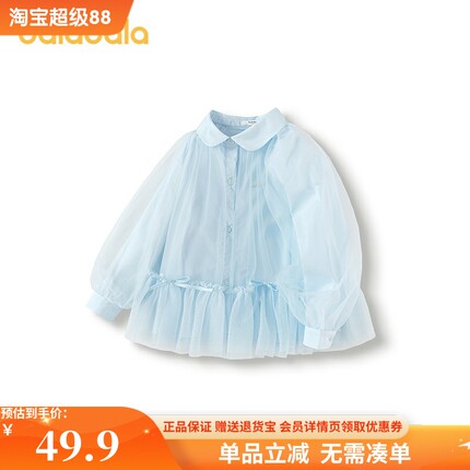 巴拉巴拉衬衫女童网纱衬衣蝴蝶结
